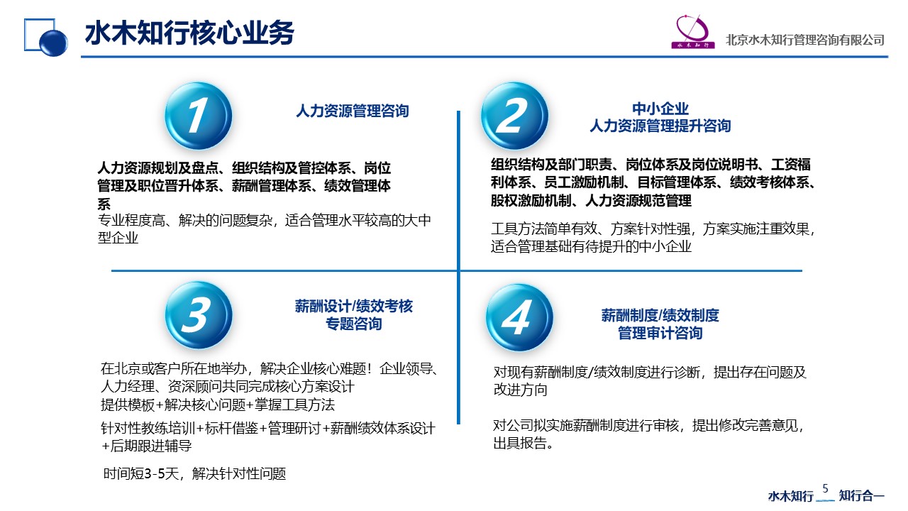 北京水木知行管理咨詢有限公司(www.bjsmzx_com.12qd.cn)專注提供人力資源管理咨詢、人力資源管理培訓、人力資源招聘咨詢、人力資源獵頭服務業務;咨詢業務范圍包括組織結構與管控體系、崗位管理體系、薪酬管理體系、績效管理體系,咨詢形式包括全過程咨詢、教練式咨詢和特訓班;培訓業務包括企業基礎管理...[詳情]